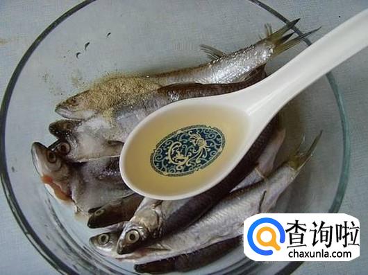 首先我们需要把小鱼去除内脏后用清水清洗干净后,加料酒、姜片、少许盐腌制
