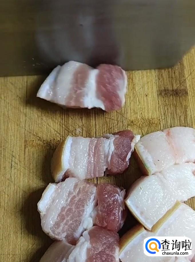 首先我们将五花肉清洗干净,用刀切成小块备用