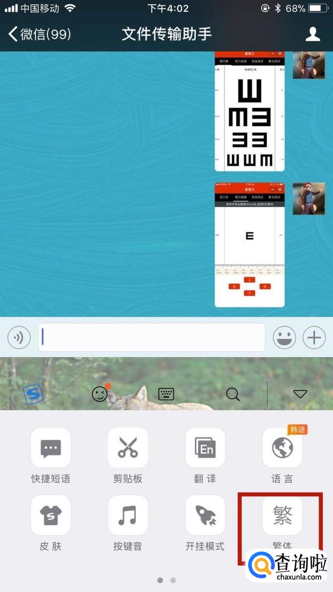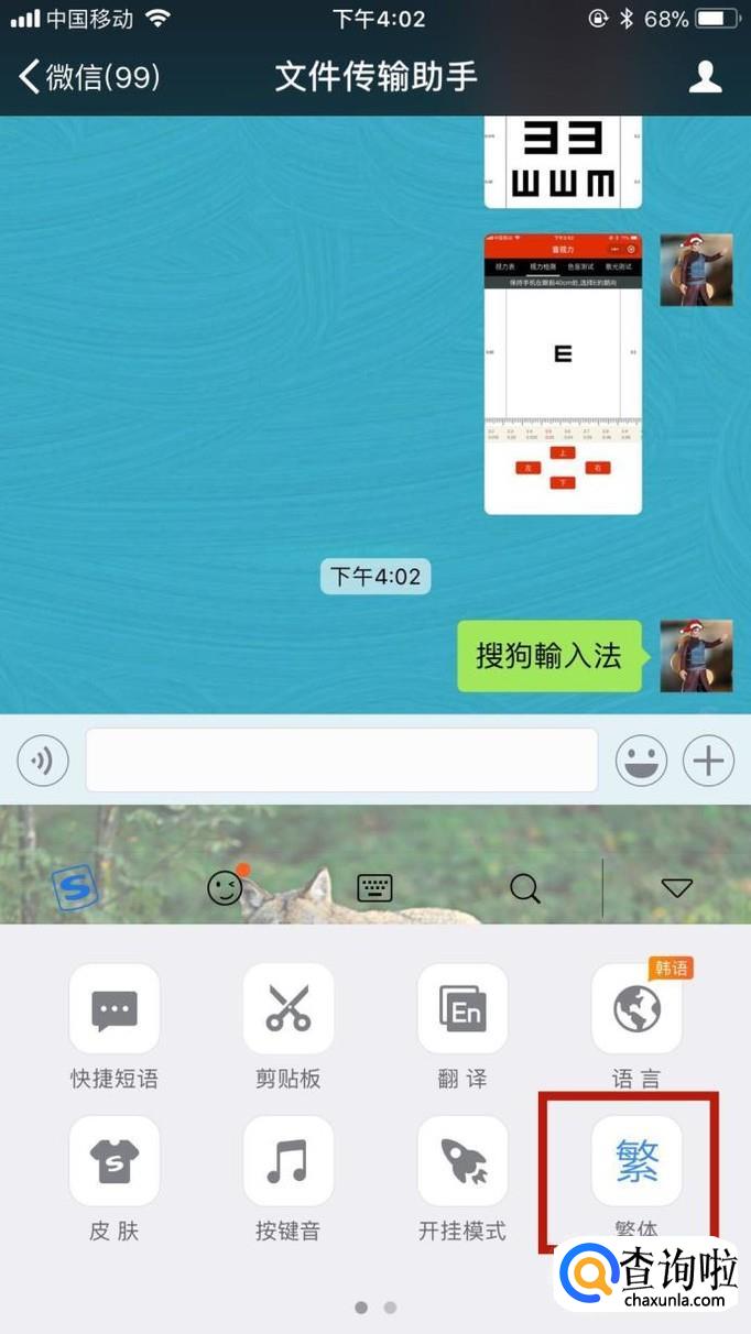 首先我们随便打开一个微信对话框并切换到搜狗输入法,如下图所示。