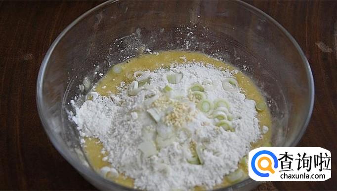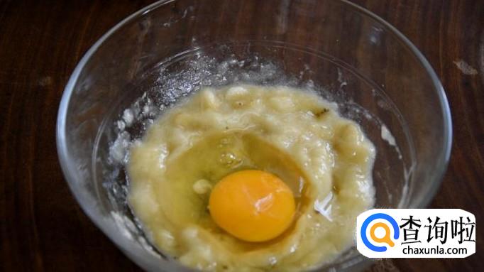 香蕉一根,白面两勺,鸡蛋一个,葱花,盐,鸡精