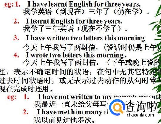 现在完成时可表示持续到现在的动作或状态,动词一般是延续性的,比如each, learn, work, study等。而一般过去式的动词一般是非延续的,比如come, go, leave, start, die, finish,等。