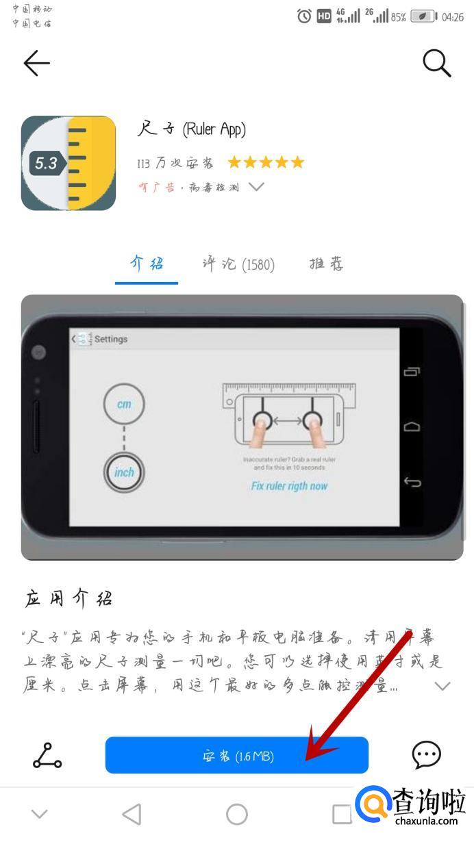首先,在应用商店里面找到并下载安装“尺子”这个软件。