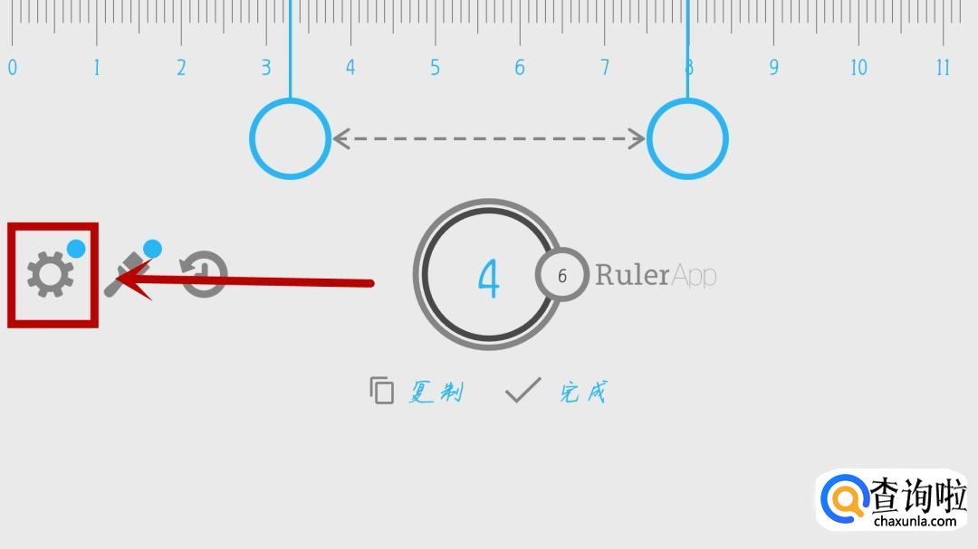 接着界面中会出现两个圆圈,拖动这两个圆圈就可以开始测量你要测量的物品了。