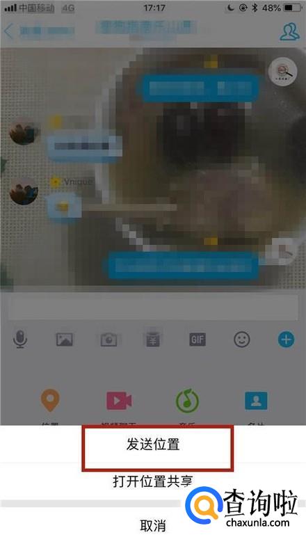 然后点击发送位置,如下图所示。