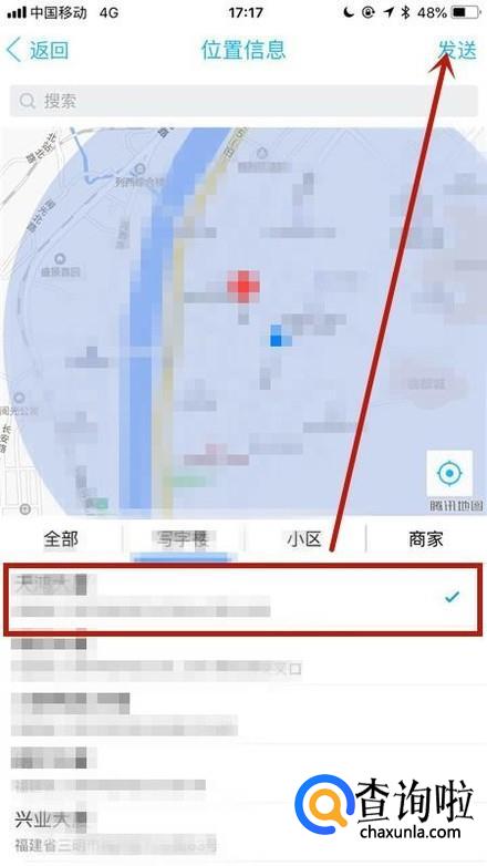 最后选择你要的位置并点击发送就可以了。你学会了吗?赶快动手试一试吧。