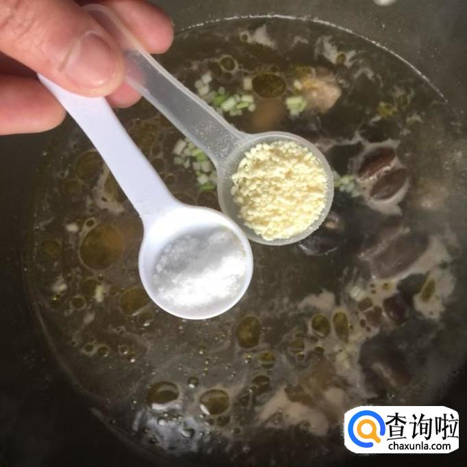 接着往锅中加入适量的葱花,一勺的盐巴和一勺的味精,小煮片刻就可以出锅了。