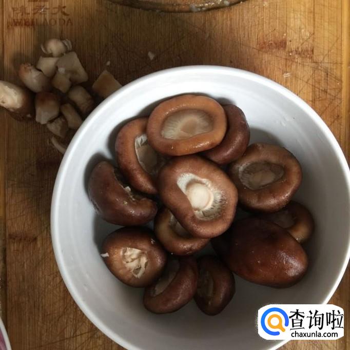 然后把香菇洗净并切去香菇腿,如下图所示。