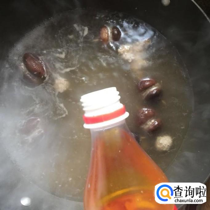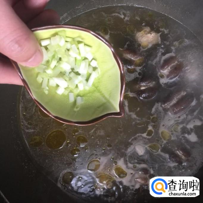 然后往锅中加入适量的清水,待水烧开,倒入香菇煮五分钟。