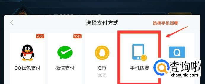 支付方式选择界面,默认为财付通快捷支付,只需点击右上角“其他方式”更改支付方式为手机话费支付即可。