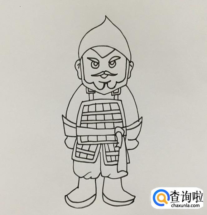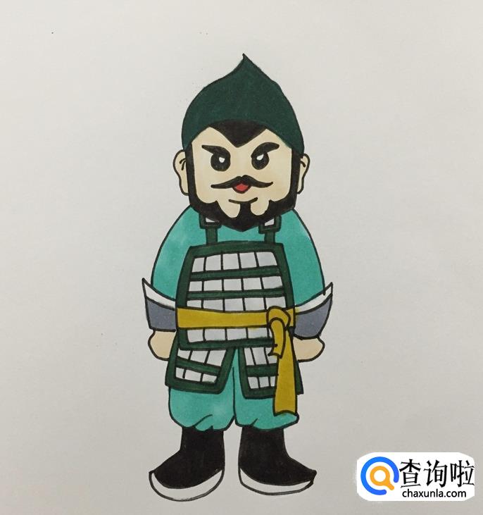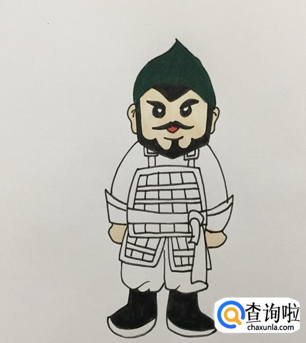 最后给士兵的衣服整体也涂好颜色,一个古代的士兵就画好了。