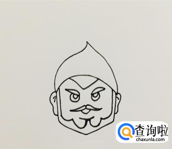 首先要画出一顶头巾,往下画出士兵的脸部轮廓,给他画上络腮胡后,再来画出他的五官。