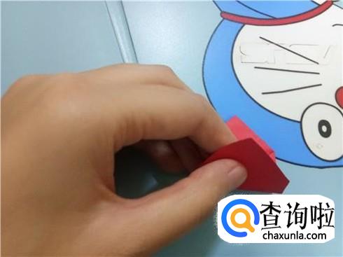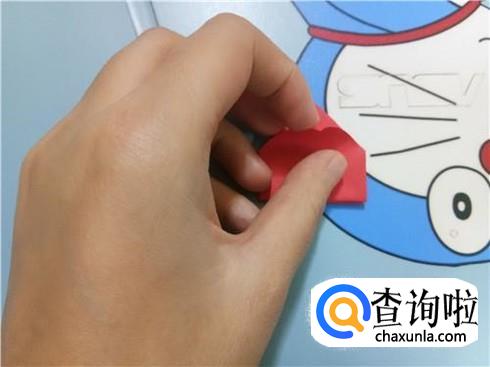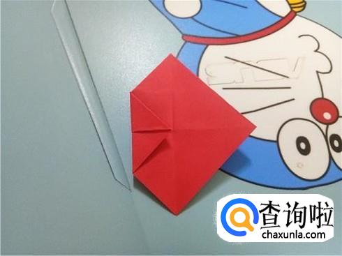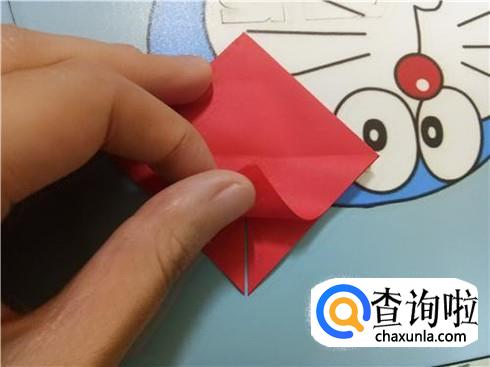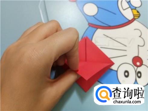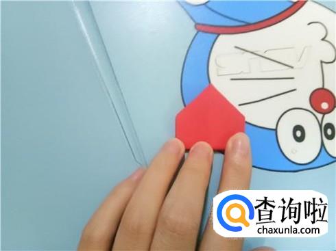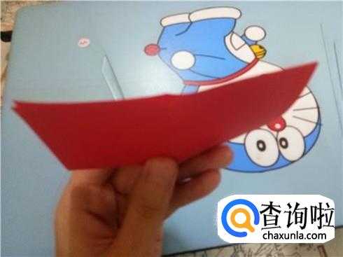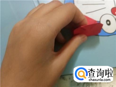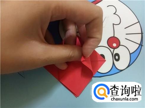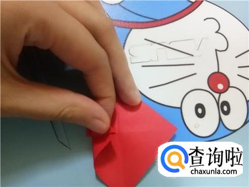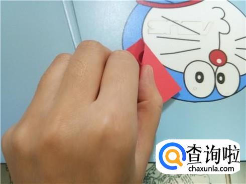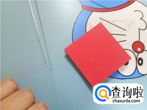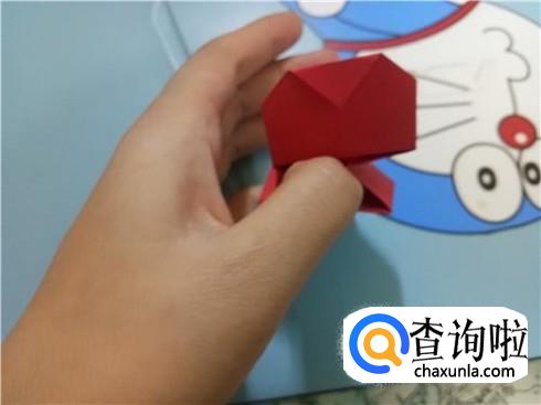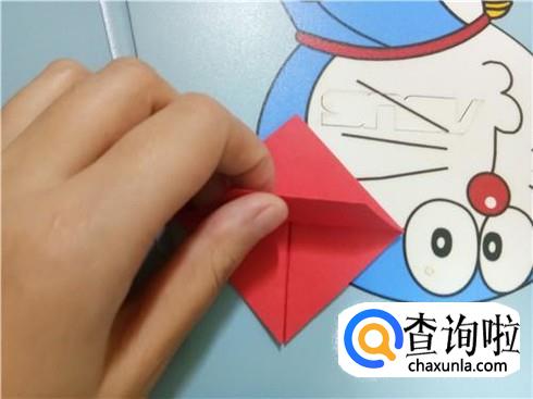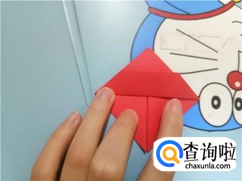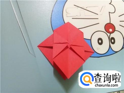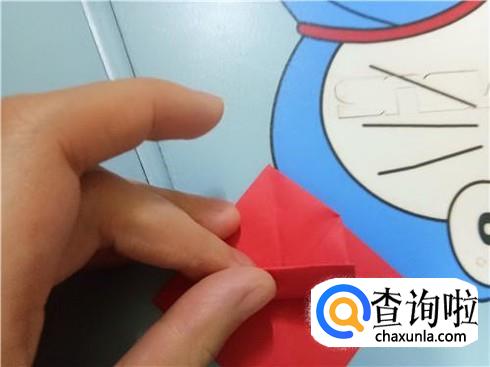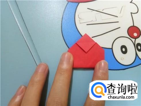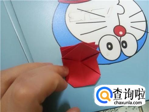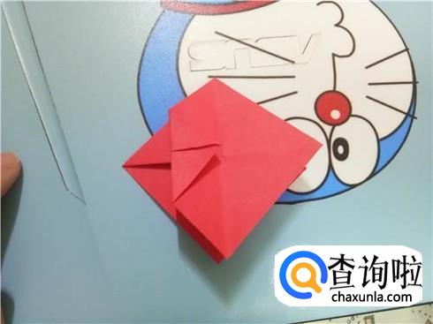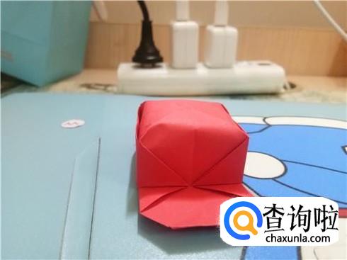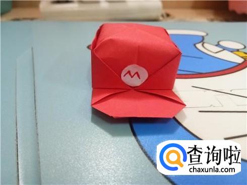 最后将手指从下方的开口处伸入,并且将它四边的都给轻轻的扯开进行整理,粘上我们之前做好的帽子标识,这样一个超级玛丽的帽子就折好了。