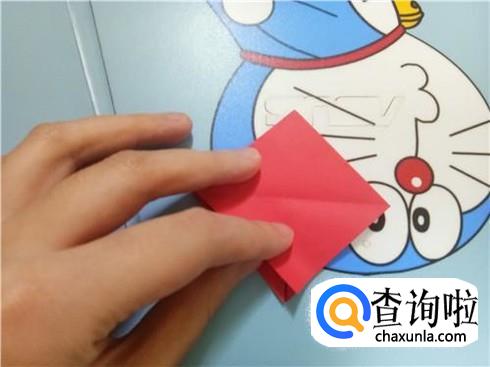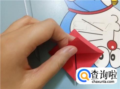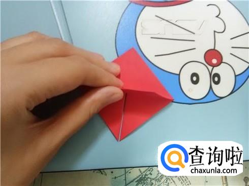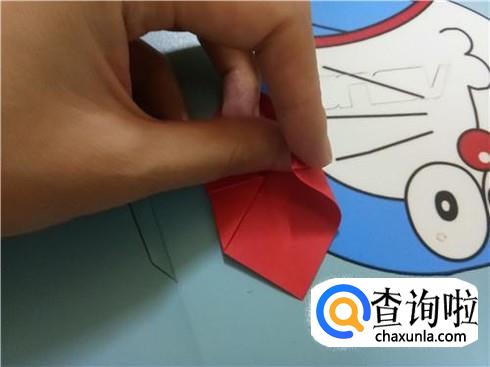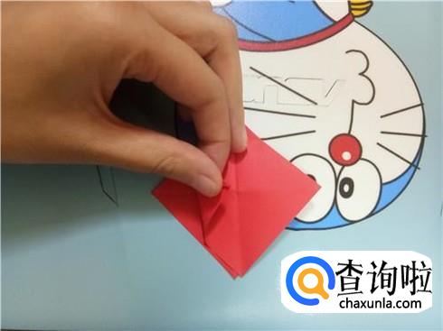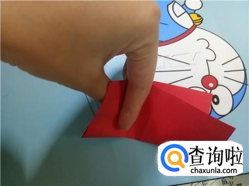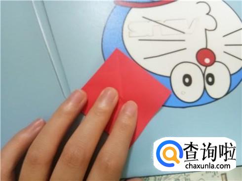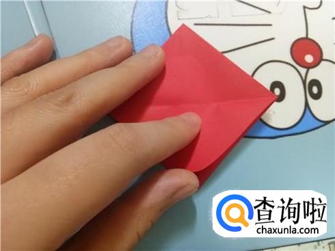 紧接着我们再翻到背面,再重复一下刚才的这个步骤。并且要将两方的都给压平,这样折出来才算工整和好看。