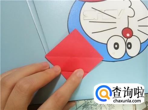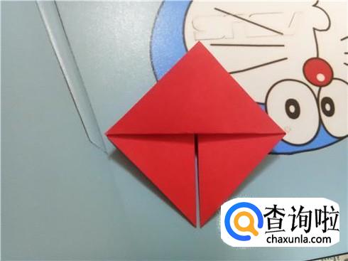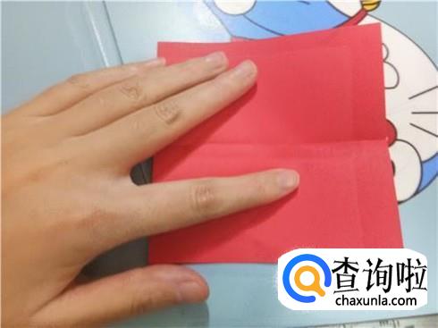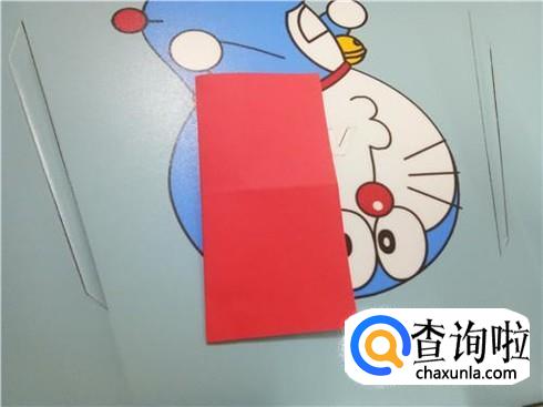 然后,我们再找到一张正方形的折纸,最好是用红色的。沿着它的任意一条中轴线对折过后展开,再沿着另外一条中轴线对折。