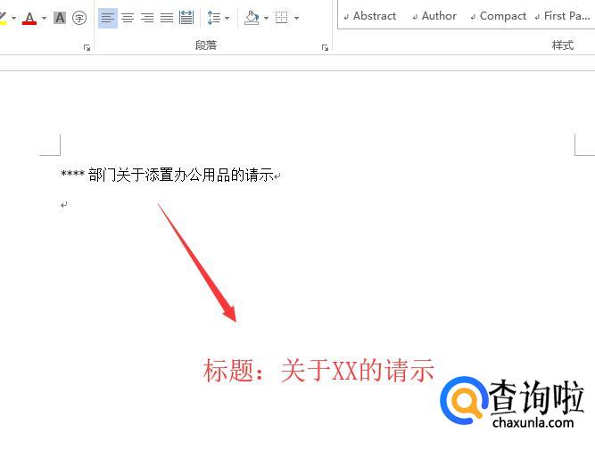 首先是请示的标题,一般的写法就是关于XX的请示,如下图所示