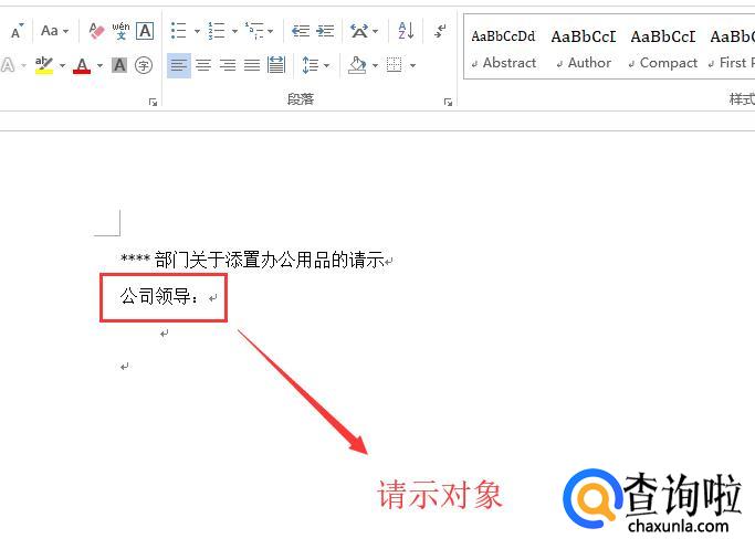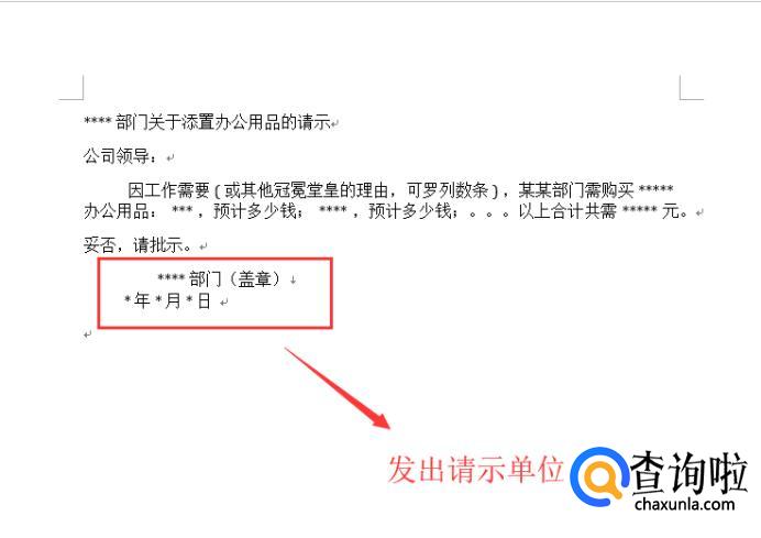 最后添加上请示的单位和请示日期就可以了,如下图所示