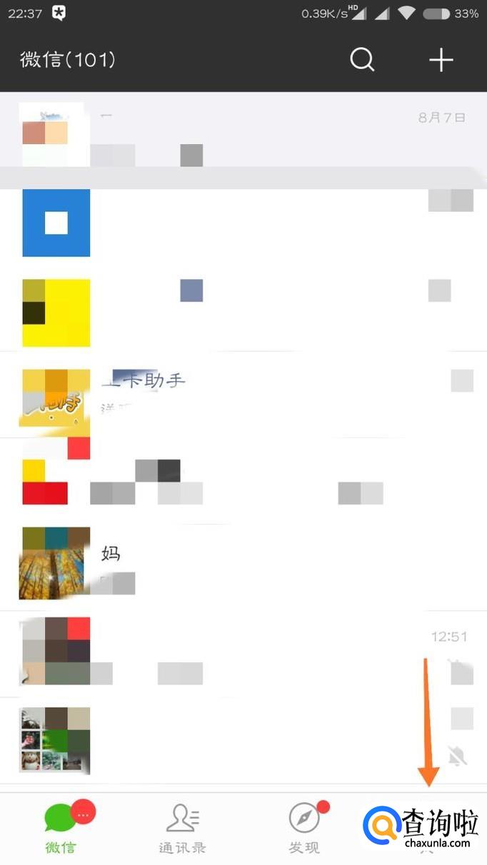 首先打开微信,点击右下角的头像“我”。