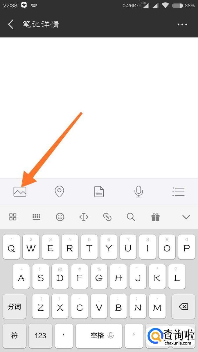 进入笔记页面之后,不必添加文字,直接点击左下角的图片。
