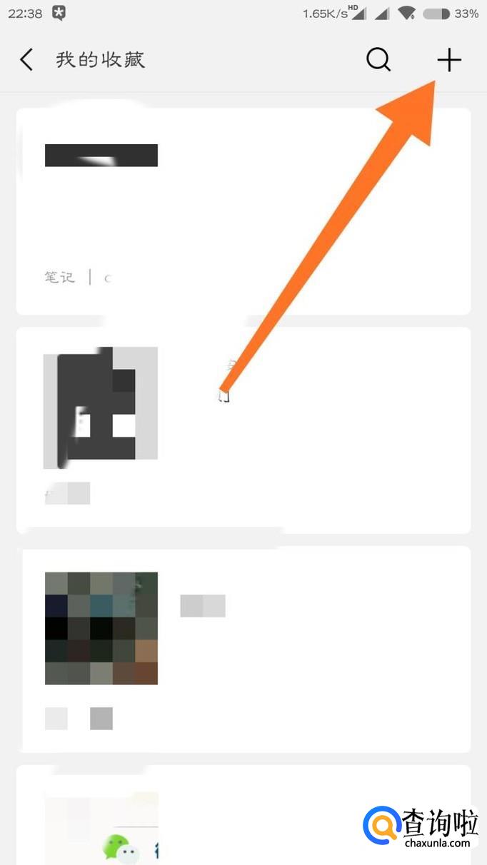 点击“收藏”,然后点击右上角的加号,创建一个笔记。
