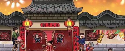 每逢春节,无论城市还是农村,家家户户都要挑漂亮的红春联贴于门上,辞旧迎新,增加喜庆的节日气氛。春联的另一来源是春贴,古人在立春日多贴“宜春”二字,后渐渐发展为春联,表达了中国劳动人民一种辟邪除灾、迎祥纳福的美好愿望。