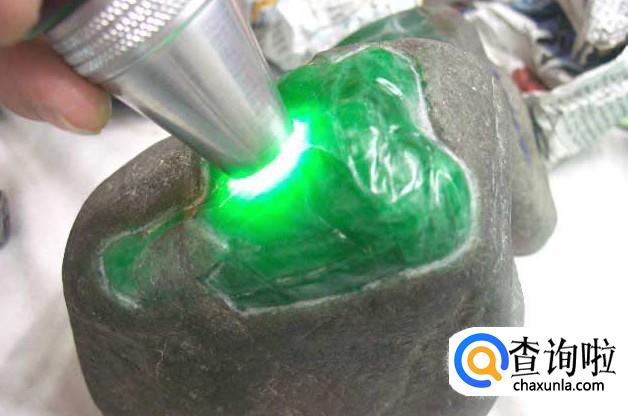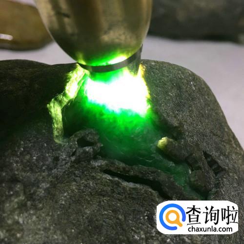 一般情况是对于半赌的赌石,在已经切了口(又称开天窗)的地方观察翡翠的颜色,最好是能看到颜色的,这样会有更大的几率开出翡翠。