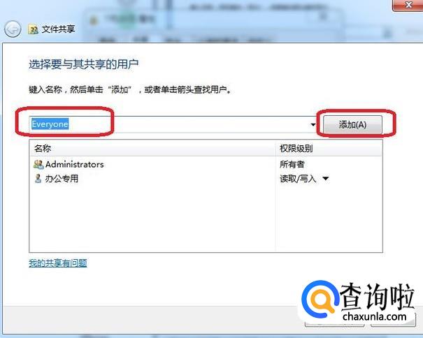 选择“everyone”,然后点击“添加”。