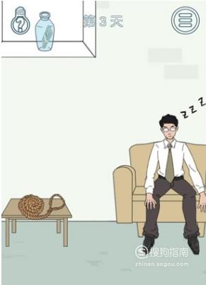 点击获取左侧桌子上的绳子,再点击男主角将其捆上。最后点击左上角藏钱的瓶子即可。