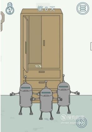 点击获取第二页柜子里中的锤子,然后用锤子砸烂音响,获取吸铁石。接下来拉开右边的窗帘,出现一个WIFI信号,把吸铁石给过去,点击获取信号发射器。回到第一页,把信号发射器给机器人,让机器人瘫痪。最后点击柜子中的钱即可。
