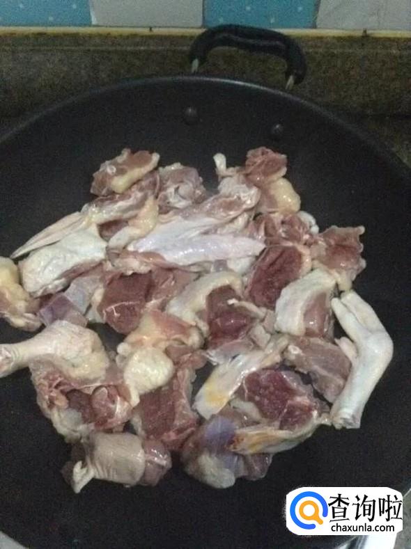 先把鸭子处理干净后再控水,控干水份后再剁成块,再次控水备用。