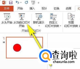 按F5键放映动画的意思是从第一张幻灯片开始放映。假设,你只想从当前这张幻灯片开始放映的话,那以,如下图所示,点击此按钮:从当前幻灯片开始
