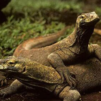 科莫多巨蜥是已知现今存在种类中最大的蜥蜴,平均体长2.4—2.5米,最长体长达3米。科摩多巨蜥的四肢粗细宛如成人手臂,头和排球大小差不多。他们生性凶猛,成体吃同类的幼体,有时吃其他的成体。能迅速运动,偶尔攻击人类。