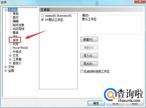 点击工作区选项在其内找到保存选项,如图所示: