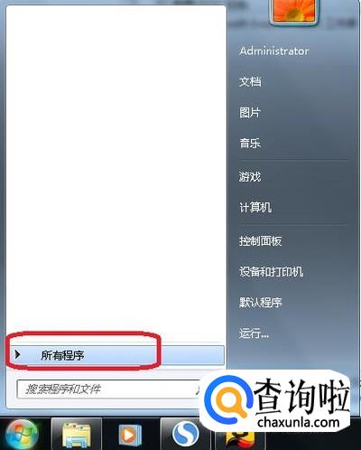 首先,我们点击开始菜单,如图所示,点击“所有程序”。