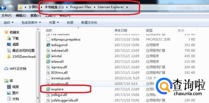 还有一种方法,我们直接找到IE的安装目录,如图所示,依次打开C盘——program files文件夹——internet explorer文件夹,就能找到iexplore应用程序了,这个就是IE浏览器,右键点击发送到桌面就可以找回IE了。