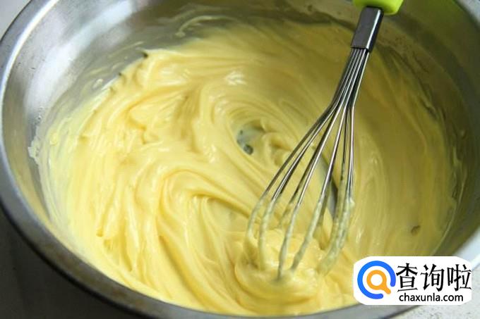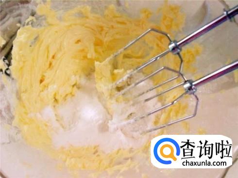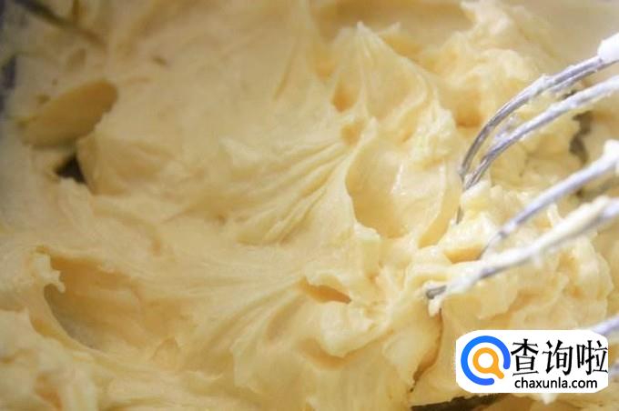 等到黄油颜色变浅,体积膨大、轻盈时,黄油就打发完成了。