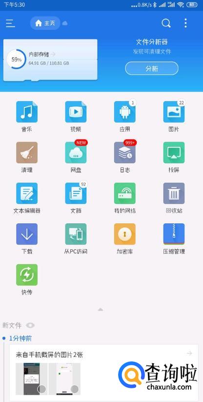 然回到ES文件浏览器主页,点击上面最大的内部存储。