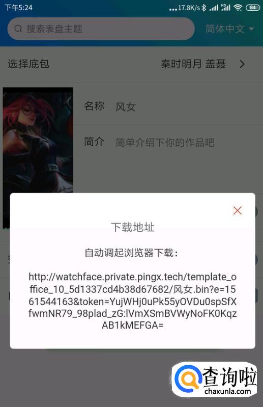 取个名字然后点击提交制作,然后会自动下载一个文件。我这里取名叫 “风女表盘”。