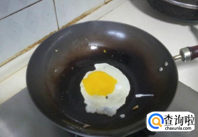 煎鸡蛋,锅中放入少许油,打一个鸡蛋,放适量的盐。喜欢吃糖心的,就不用煎很久。