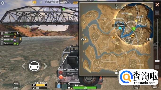 这个不直观,可以看一下小地图,大概位置就是在地区的右上角的位置,大家记住这个位置,进入游戏后可以找一辆车赶往此地。