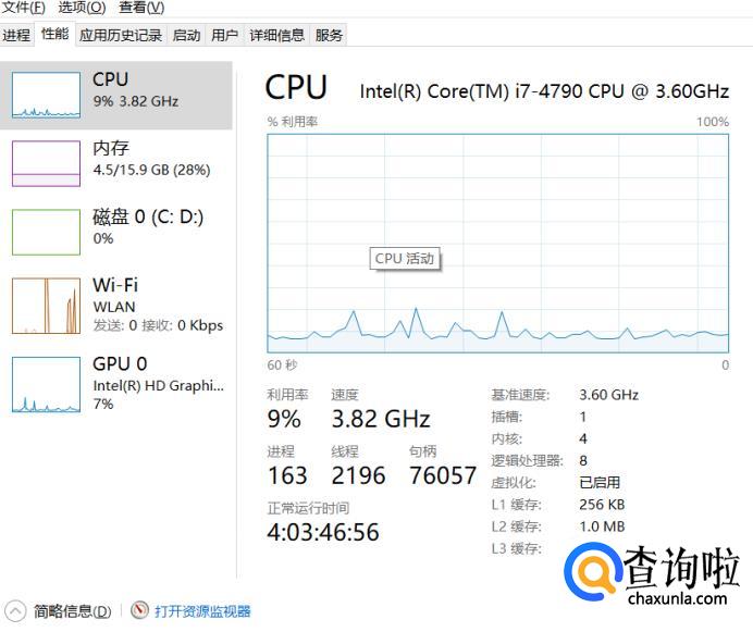 在任务器里面找到“性能”,在里面找到“资源管理器(资源监测器)”。
