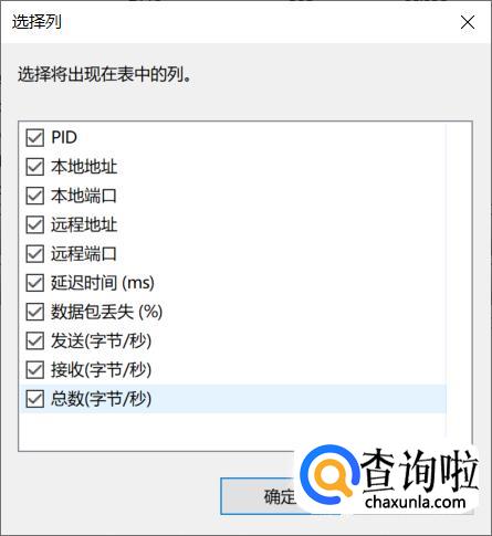 在“选择列”中勾选“发送”、“接收”、“总数”,再确定。