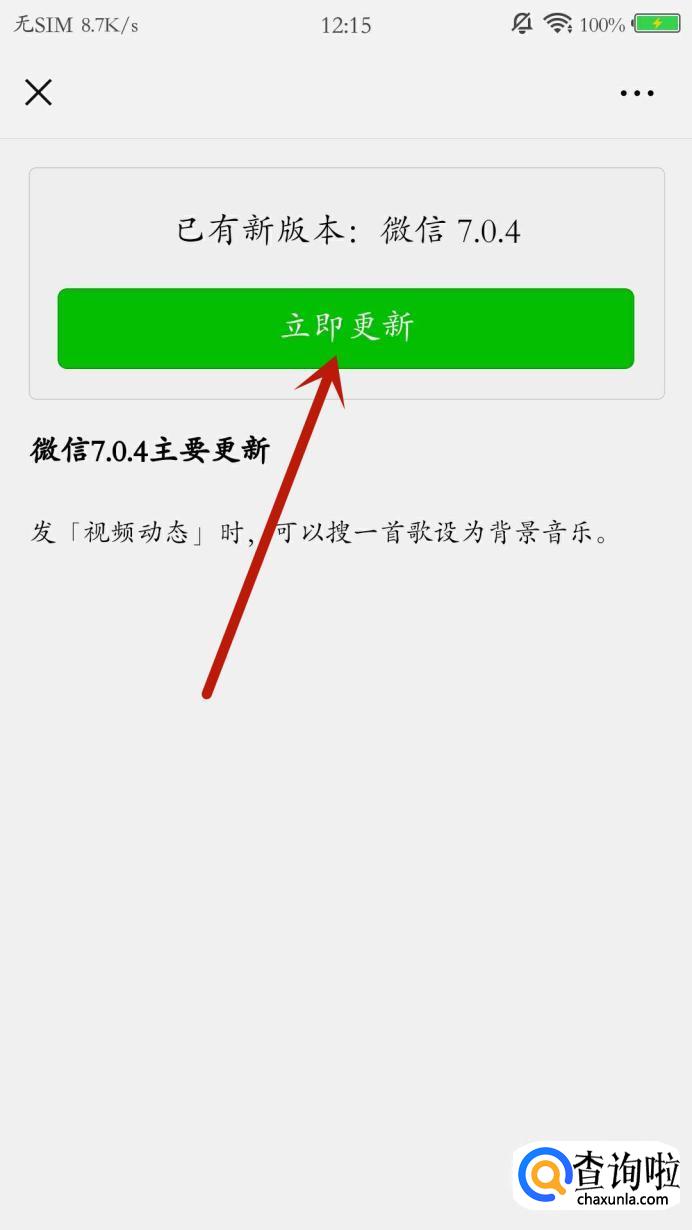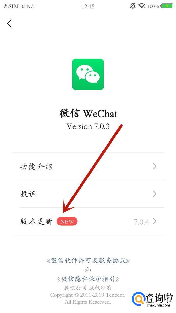 更新微信版本到最新版,需要进入微信设置,选择“关于微信”,点击“版本更新”,选择“立即更新”,将安装包下载完成之后,将其安装即可。以下用安卓系统的微信(V7.0.3)操作演示一下。