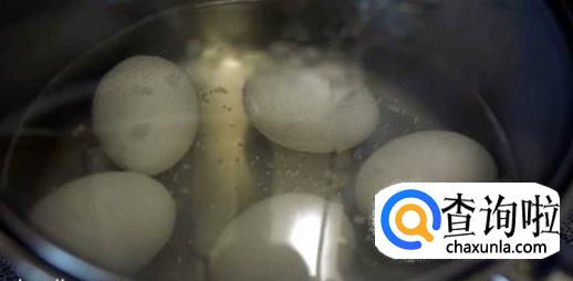 水煮开后把鸡蛋放入其中然后关小火,处于即将沸腾的状态。