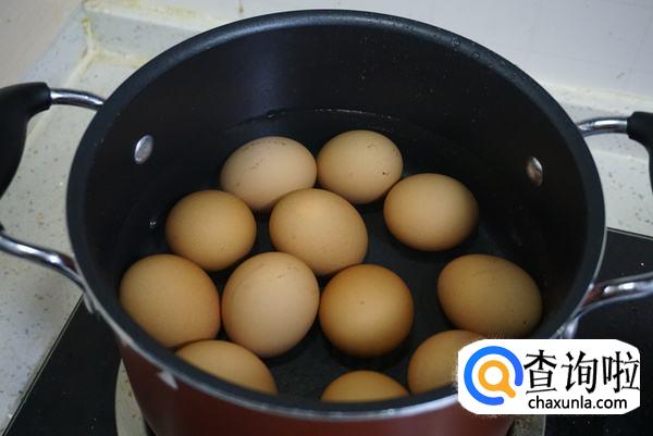 蛋放入冷水锅,待到水烧开时,减小火。