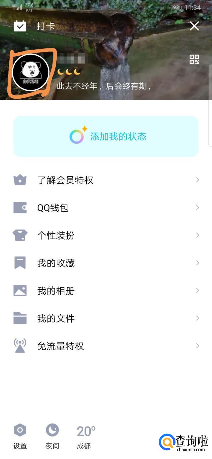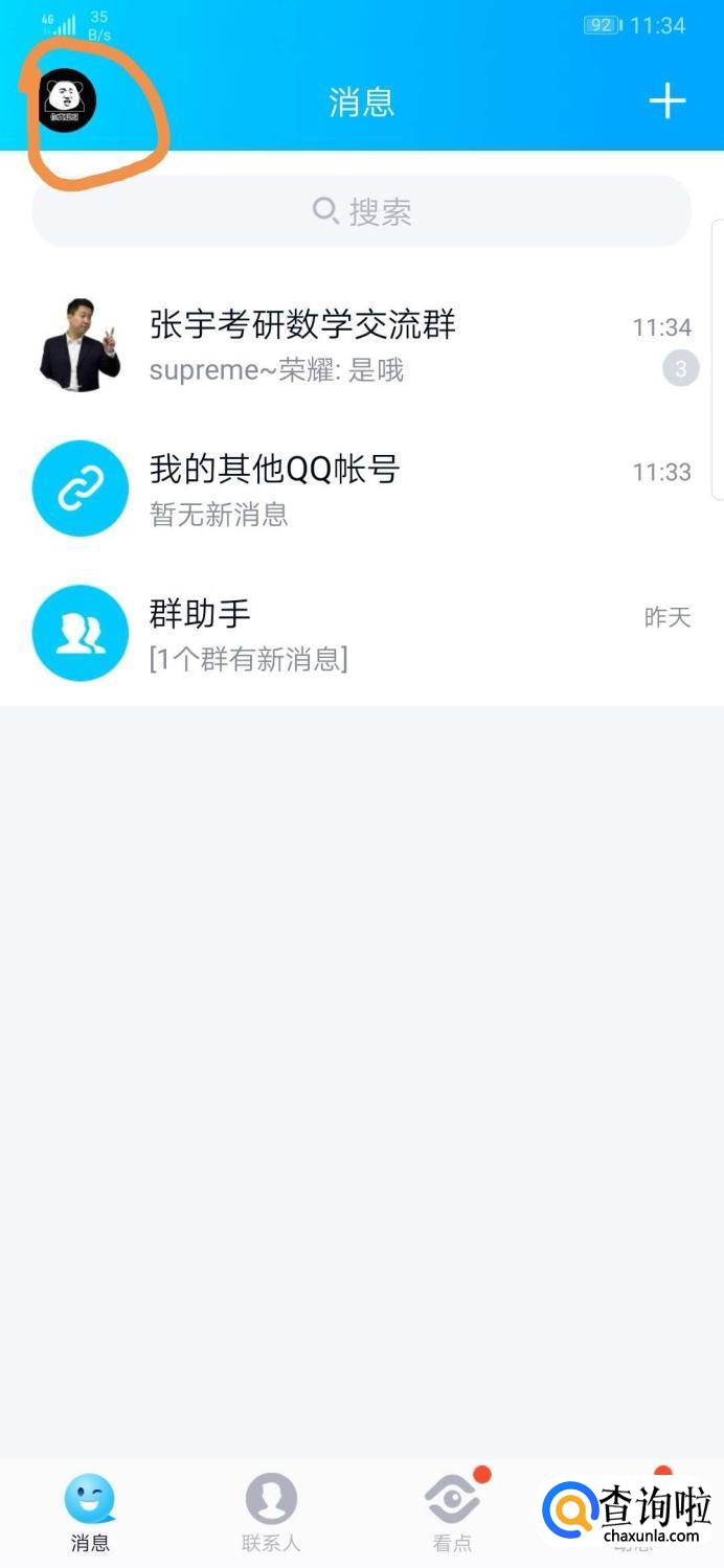 首先我们登录自己的QQ账号,然后在登录的状态下,点击左上角的头像。如下图所示: