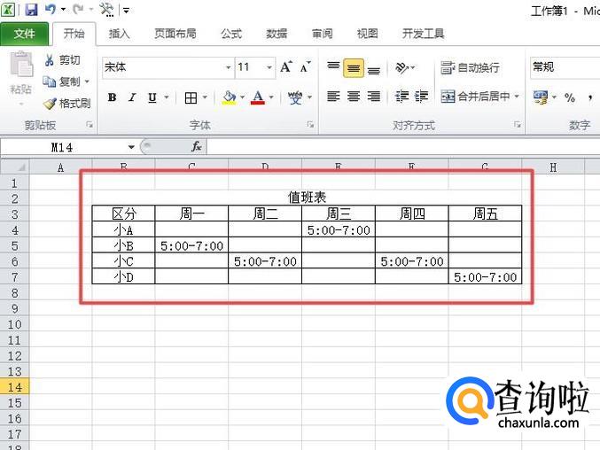 最后,我们输入相应的值班时间就制作好了。