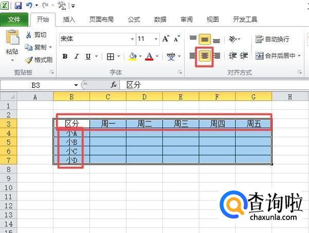 之后我们在表格中输入如图所示的内容,然后选中表格,将里面的字体全部居中设置;