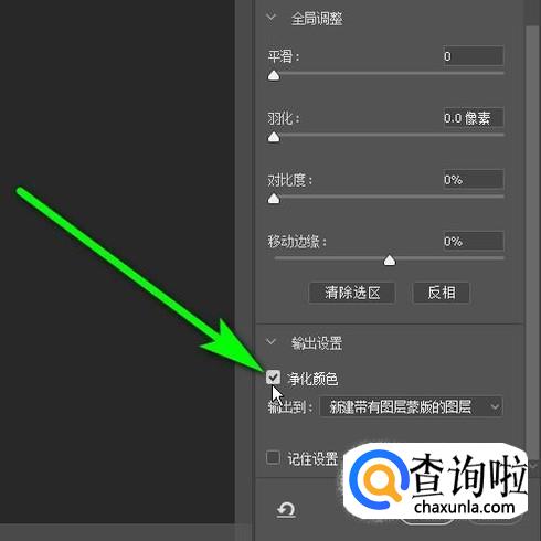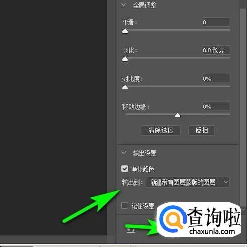 在“输出到”这里选择:新建带有图层蒙版的图层;再点确定。