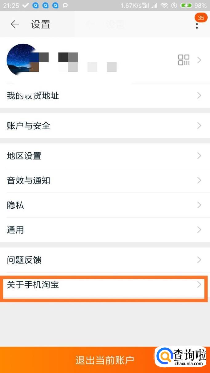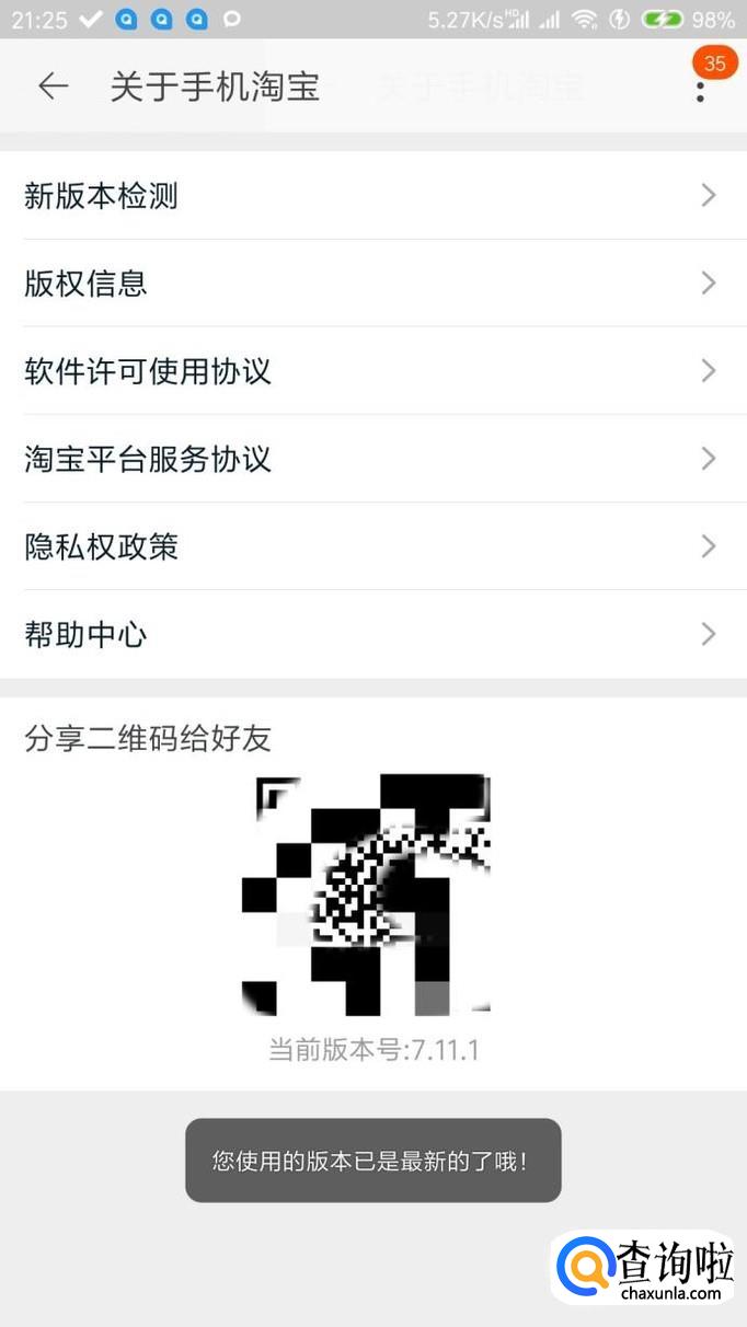 检查版本更新升级到最新版本,进入手机淘宝的设置里面,在关于淘宝里面检查更新,升级到最高版本。
