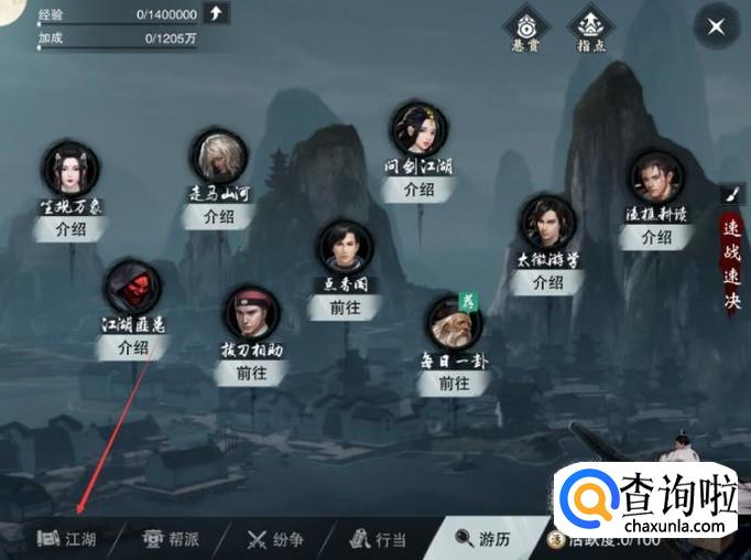 接着再点击左下角的【江湖】按键。
